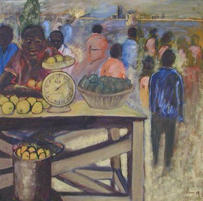 This is the Lusaka National Museum, which surprised me by being open on a Sunday. The paintings below are from an exhibit that was just being set up when I came in, so I can't credit the artists yet, as the painting weren't labeled. I've got the curator's e-mail however, so I can get the info later.